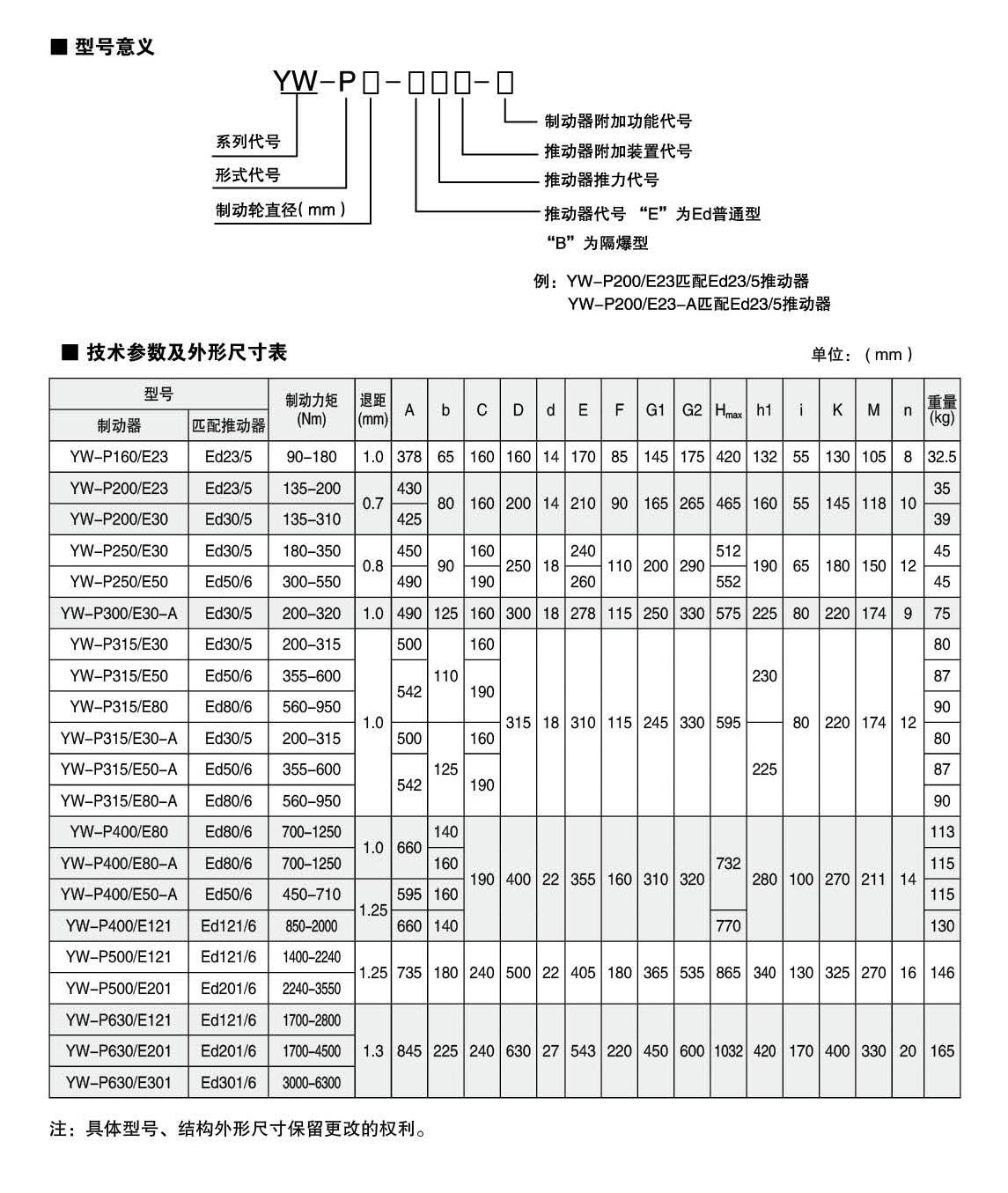 YWZ8.YWP系列電力液壓鼓式制動(dòng)器的連接尺寸和制動(dòng)力矩參數(shù)符合JB/ZQ4388-86和GB6333-86(帶A系列)標(biāo)準(zhǔn),技術(shù)要求符合JB / T6406-2006標(biāo)準(zhǔn),配套符合DIN15430標(biāo)準(zhǔn)的Ed系列推動(dòng)器。